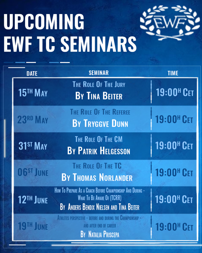 We are glad to inform you that EWF will continue to present an online lecture series on technical officials’ roles!