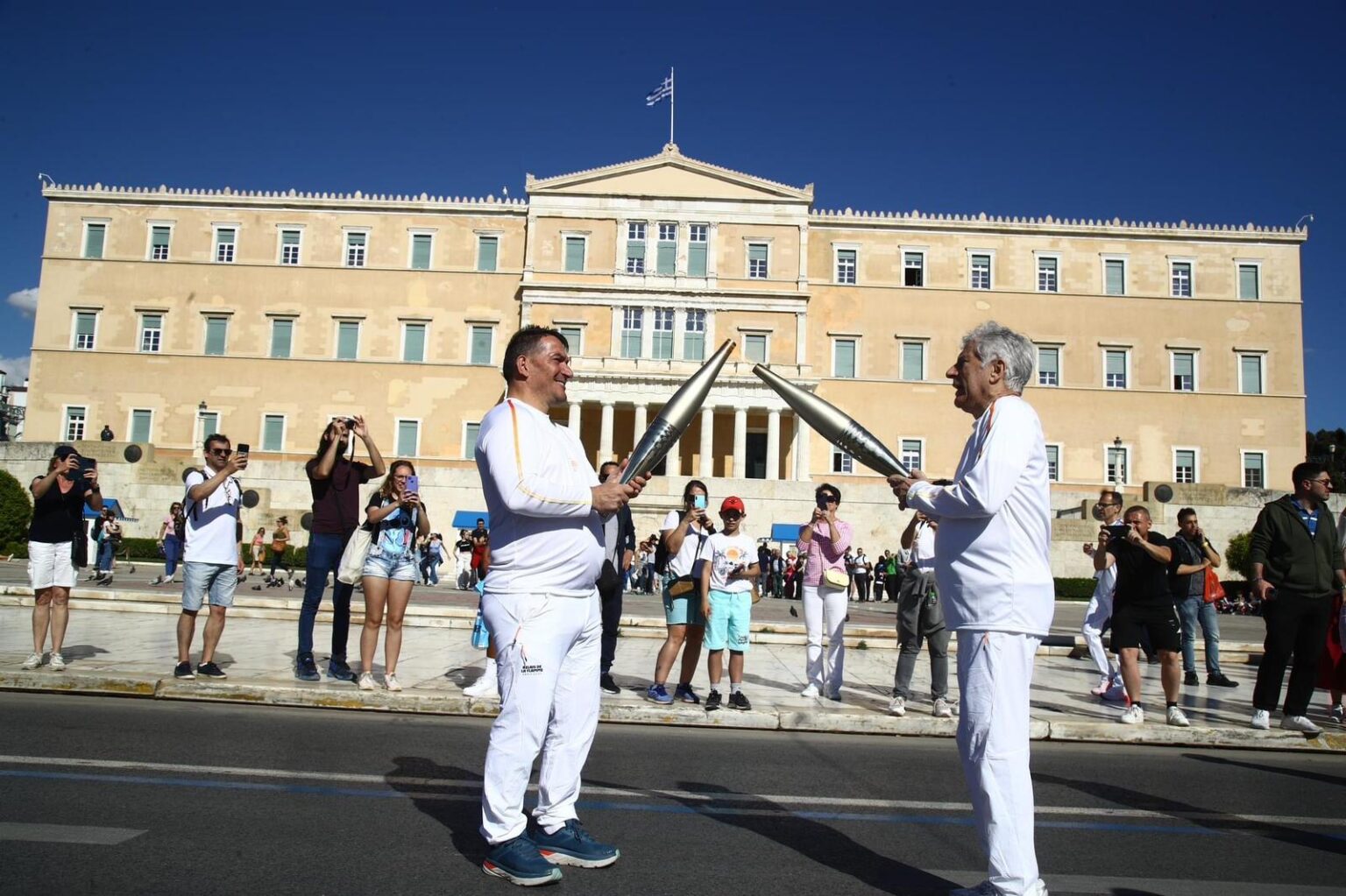 Athens, Greece – Pyrros Dimas, the three-time Olympic gold medalist, took part in the Olympic torch relay this week, carrying the flame in front of the Greek Parliament.