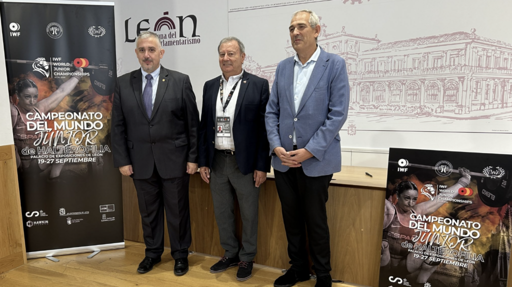 With less than 24 hours before the start of the IWF World Junior Championships in Leon, the opening Press Conference of the event took place in the Town Hall of the Spanish historical city. Vicente Canuria, in charge of the municipal Sports’ affairs, welcomed Antonio Conflitti, President of the European Weightlifting Federation and IWF Executive Board Member, and Constatino Iglesias, President of the Spanish Weightlifting Federation, for a brief presentation of the competition.