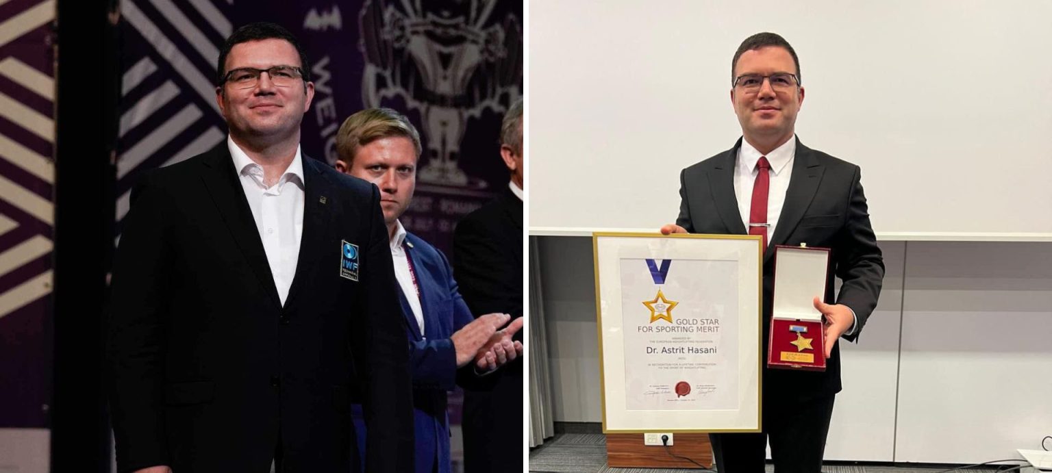 For his significant contributions to European weightlifting, Dr. Hasani was awarded the Gold Star, the highest EWF Award in the sport, at the EWF Congress in Warsaw, Poland, in 2024.
