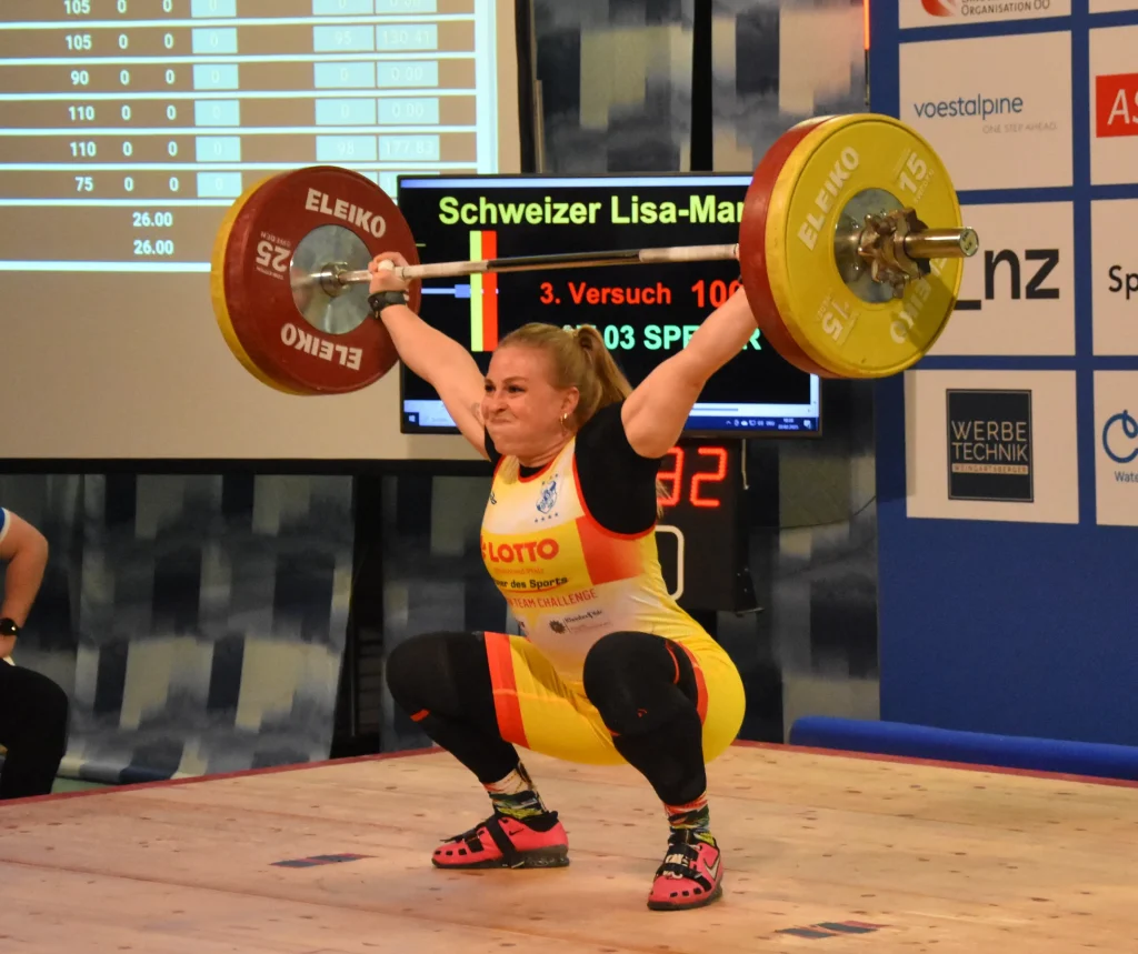 TEAM SPEYER SHINED WITH OLYMPIAN SCHWEIZER LISA MARIE From Team Speyer, the 2022 European champion in snatch in the 71 kg class and participant at the 2021 Olympics in Tokyo shone especially with the 216 kg in total and 391,95 Sinclair points, making her the second Best of the evening, right after Simbürger.