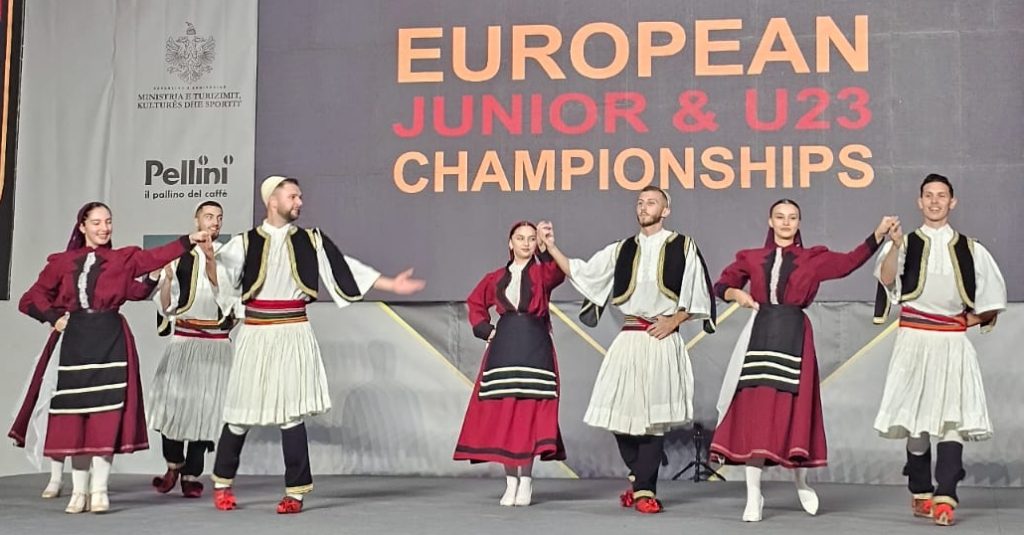 A vibrant cultural program showcasing traditional Albanian music and dance lit up the stage. Bright folk costumes, dazzling choreography, and lively rhythms filled the arena, uniting athletes, coaches, officials, and volunteers alike in a shared celebration of movement and spirit.