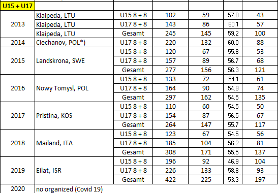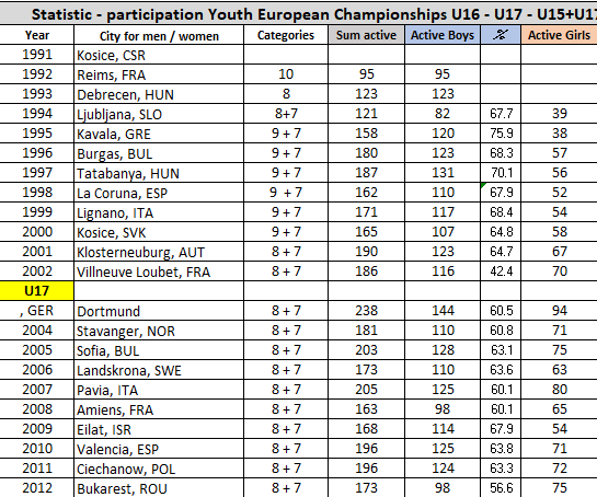 The first championships for schoolboys and girls took place in Kosice, Slovakia, under the direction and regulation of the then president of the Slovakian Association, Dr Karol Guman. In the following years, numerous European federations quickly developed an interest in participating in this format in 1992 and 1993. It was recognised that he time span until junior age was too long.