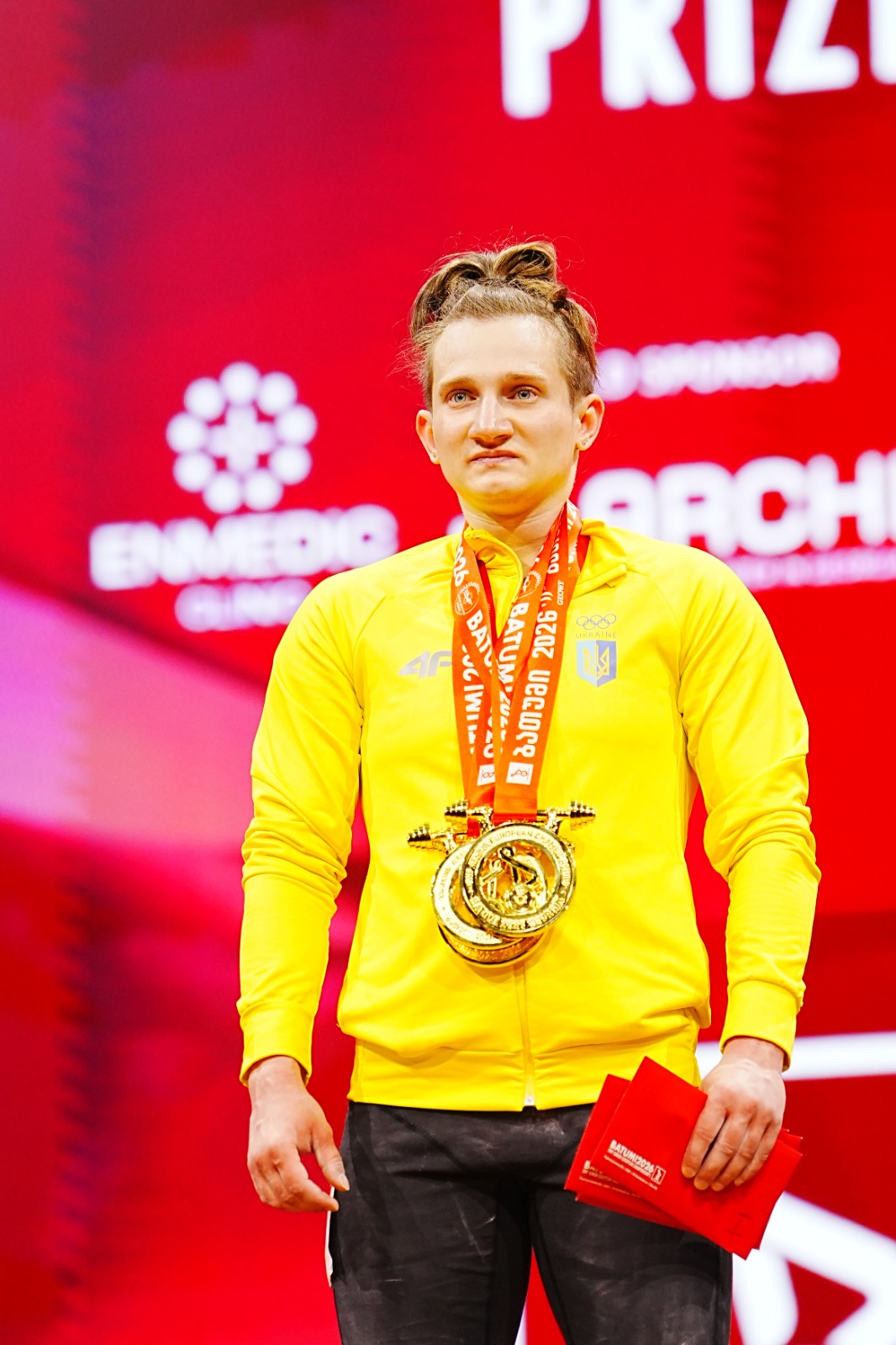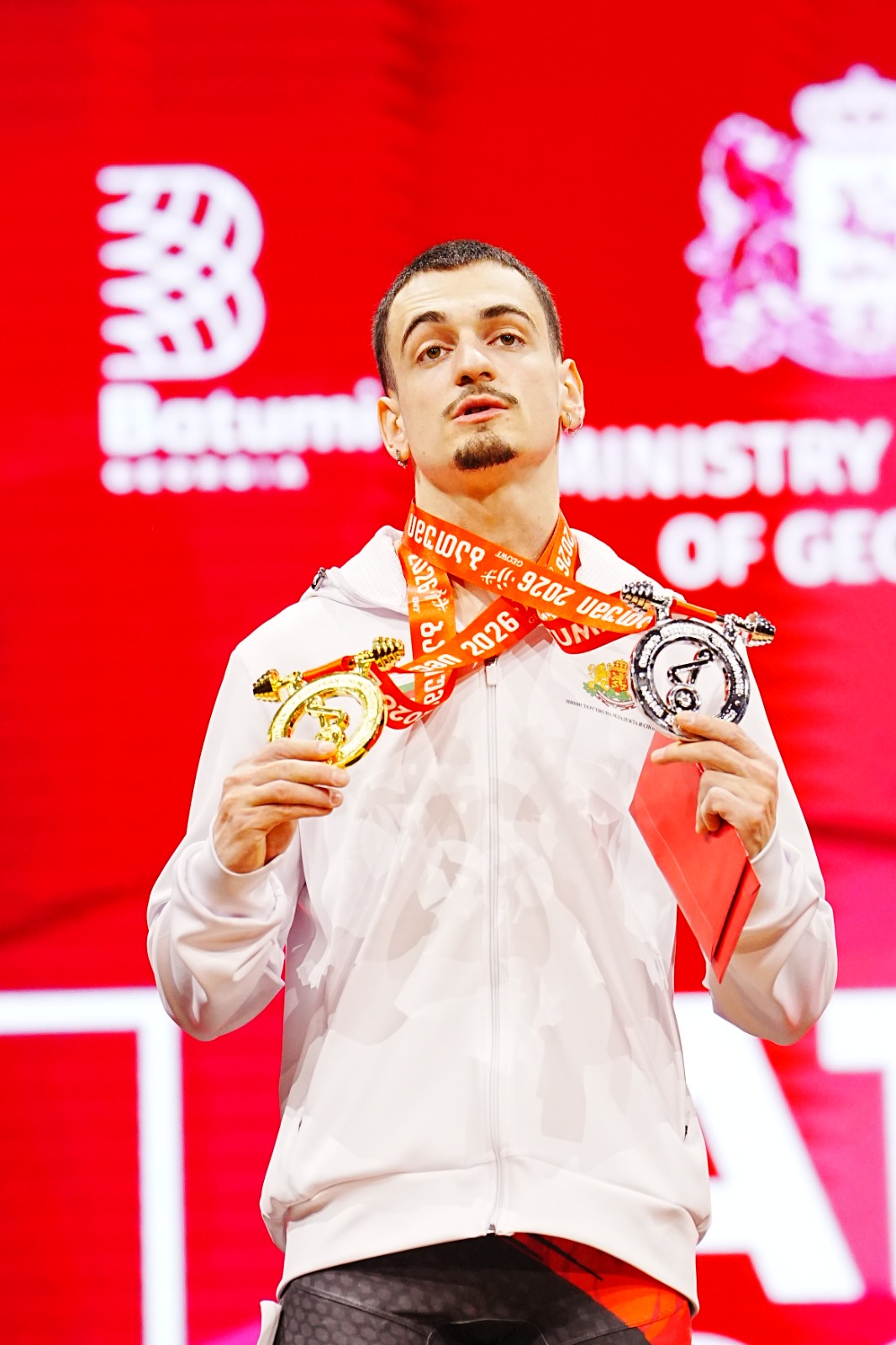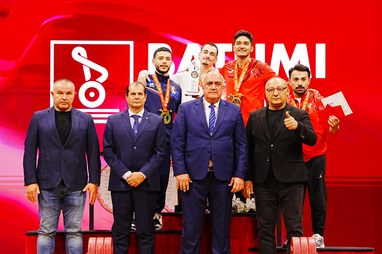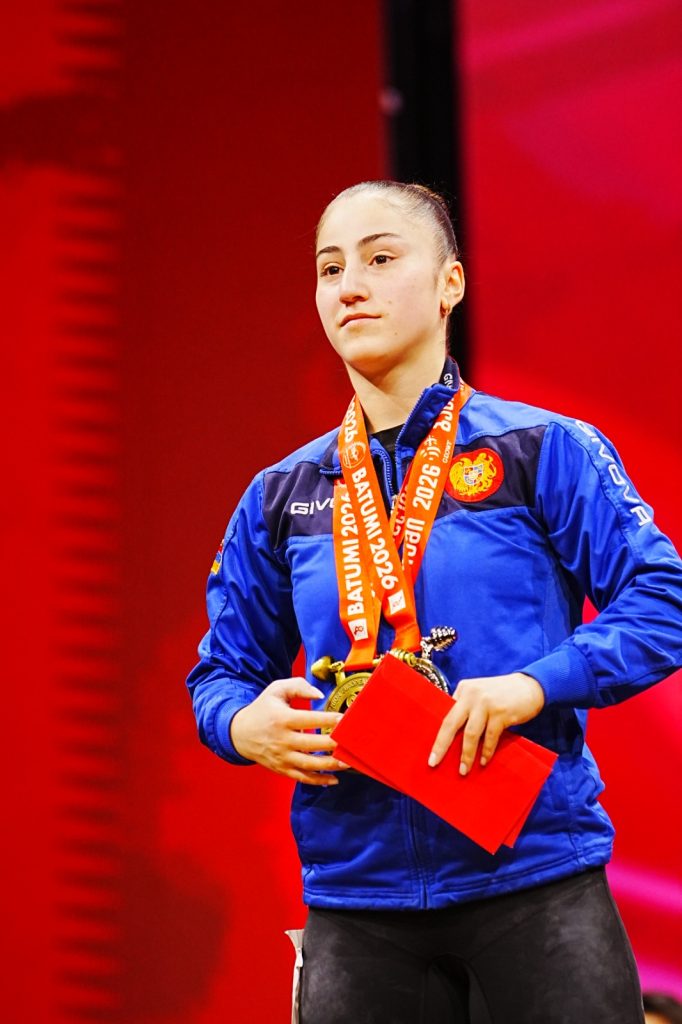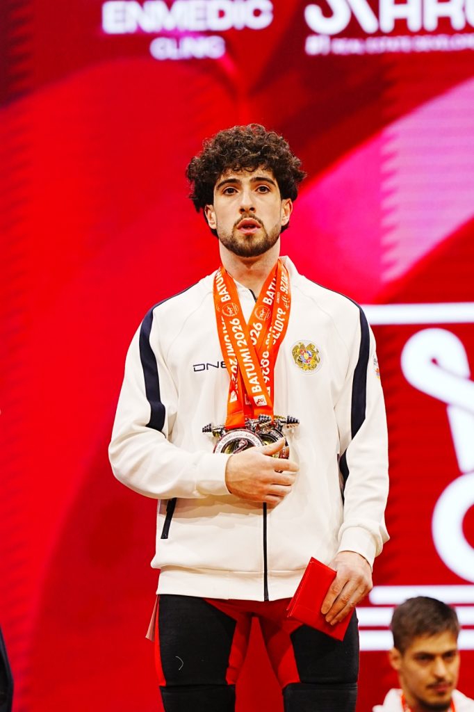 The men’s 60 kg category produced one of the most dramatic stories of the day. Georgia’s Goderdzi Berdelidze thrilled the home crowd by winning the snatch with 125 kg, ahead of Armenia’s Garnik Cholakyan on 124 kg and fellow Georgian Ramini Shamilishvili on 122 kg.